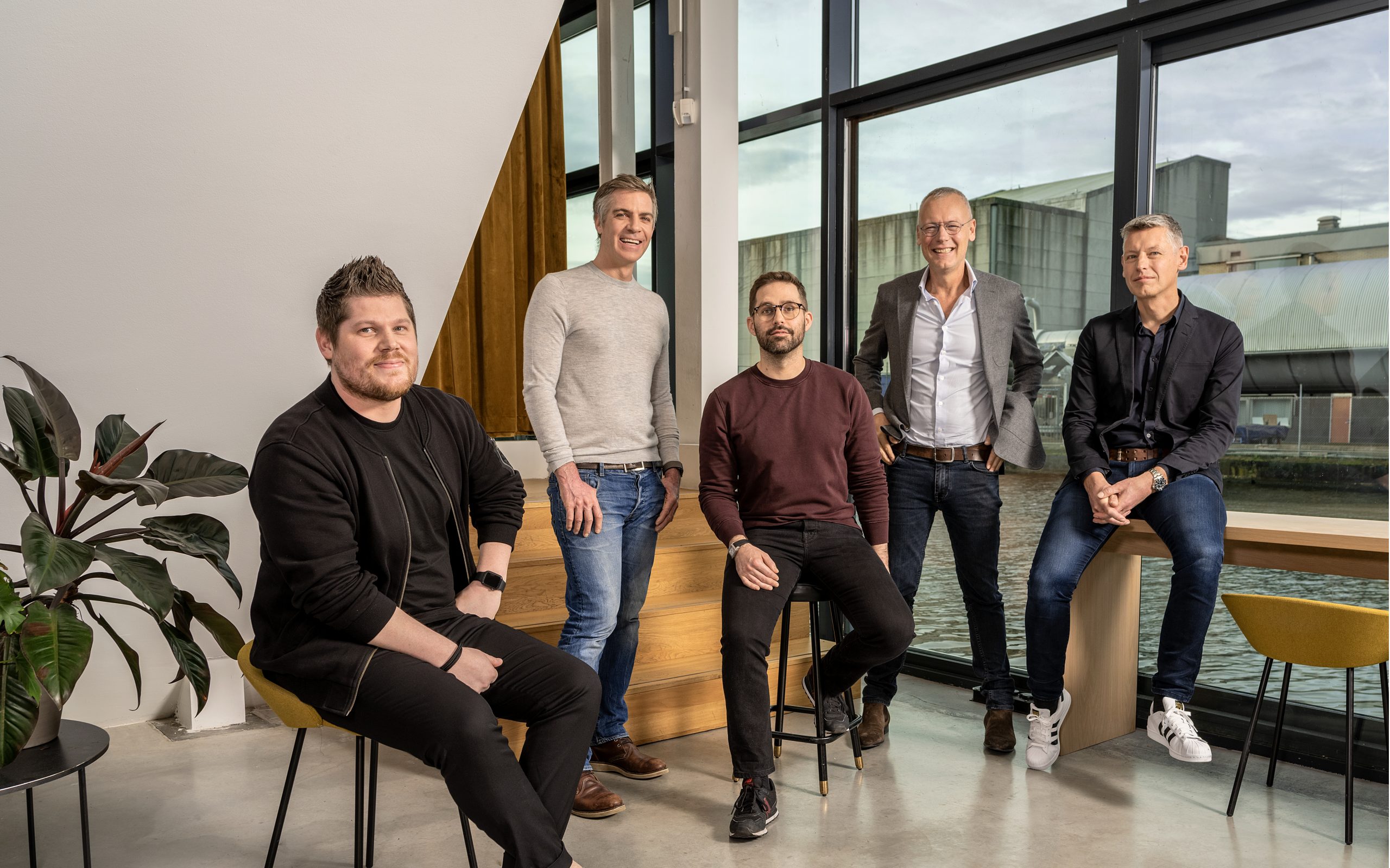 Photo (f.l.t.r.) Dimi Albers (CEO), Daniel Rupp (CFO), Frank Schmid (COO), Paul Manuel (co-founder), Bart Manuel (co-founder)