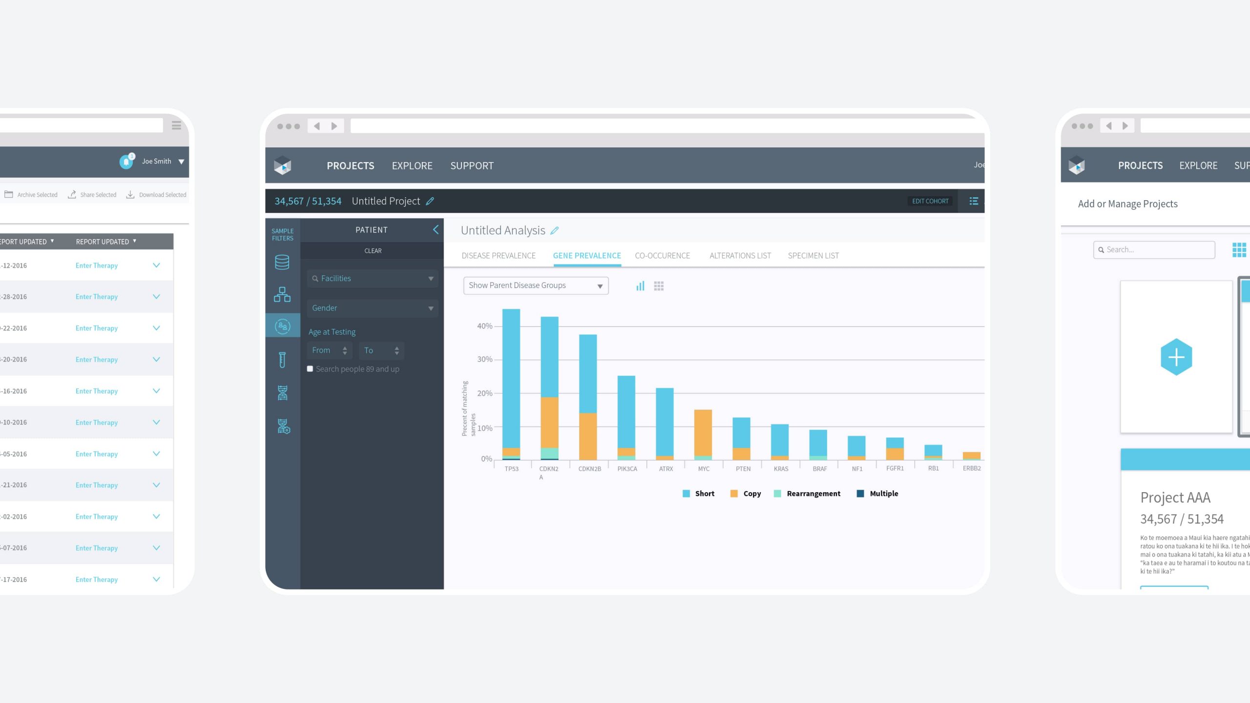 Over the course of six months, Barcode® worked closely with the FMI engineering team to augment the product with key features, while at the same time transitioning the app to FMI’s internal product team. Today, FoundationInsights™ is considered a critical tool in the fight against cancer and is used by many of the world’s top genomicists.